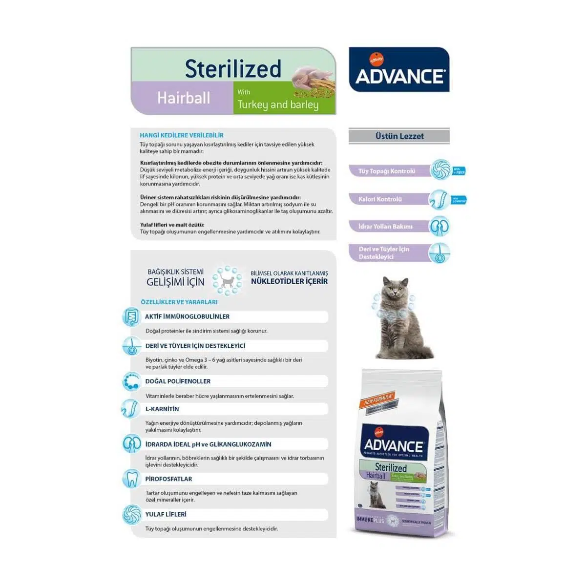 Advance Sterilised Hairball Tüy Yumağı Kısırlaştırılmış Kedi Maması 1,5 Kg