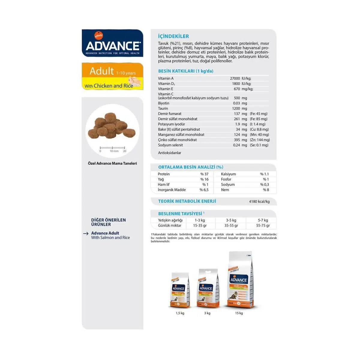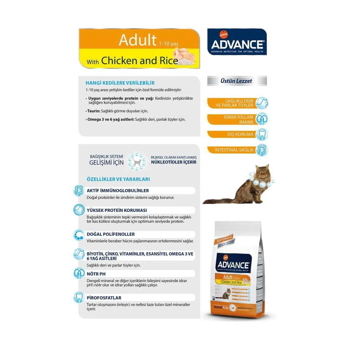 | Etiketler | Advance Tavuklu Ve Pirinçli Yetişkin Kedi Maması 15 Kg |