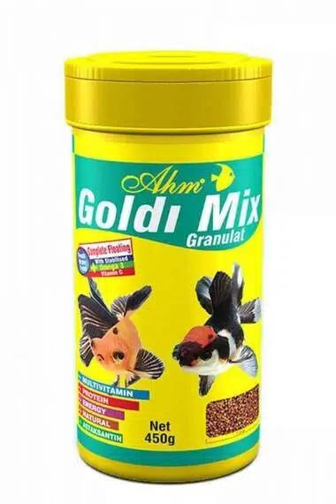 İki farklı yemden oluşanAHM Goldi Mix doğru beslenme açısından önemli bir yemdir. Enerji ve vitamin yönünden zengin, sağlıklı ve dengeli beslenme olanağı sağlar. Akvaryum balıkları için tam yemdir. Günde 2 defa balıkların 2-3 dakikada tüketebilecekleri kadar verilir.