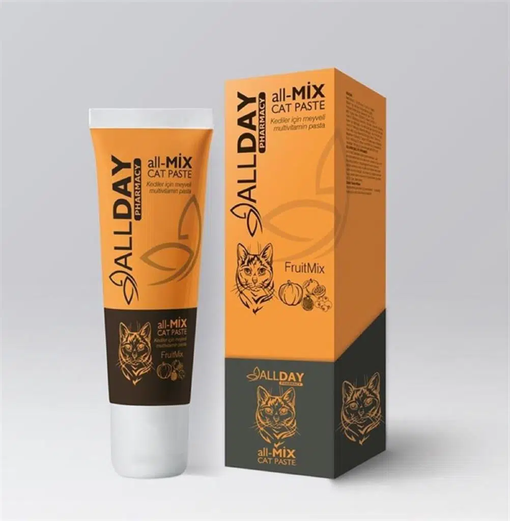 Bu noktada sorunları çözecek kaliteli bir ürün kullanmanız kedinizin yaşam kalitesi açısından önemlidir. All-Mix Cat Paste en önemli özelliği tüm boşaltımın sağlıklı ve doğal olarak yapılmasını sağlamaktır. Kedilerin sağlıklı gelişimini destekleyen, vücut dirençlerini arttıran vitaminler ve amino asitler içeren tamamlayıcı yemdir. Bağışıklığı güçlendiren, metabolik gelişimi hızlandıran, enerji ve canlılık veren vitamin ve mineral desteğidir.