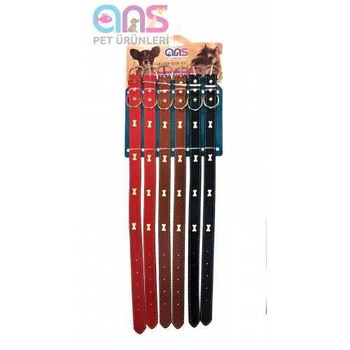 ANS 3890 Kemikli Deri Köpek Tasması 35cm