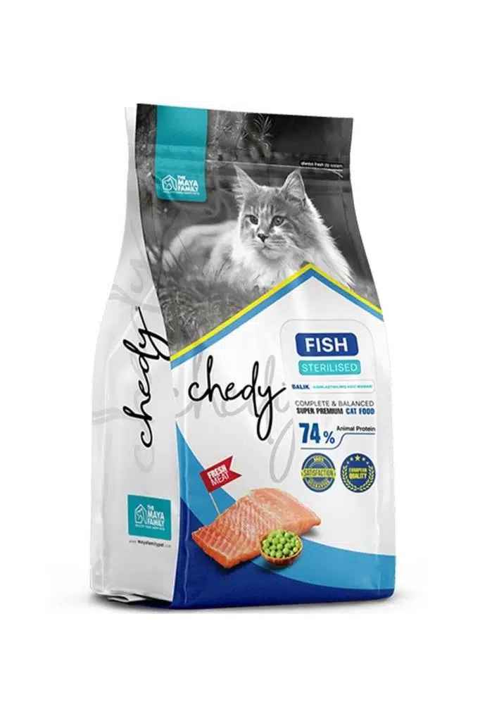 Taze et gibi üstün kaliteli içerikler sayesinde yüksek sindirilebilirliğe sahip bu Süper Premium formül, kilo almaya eğilimli kısırlaştırılmış kedilere özel geliştirilmiştir. Chedy Sterilised Fish, kısırlaştırma operasyonu sonrası kilo alımını en aza indirmeye yardımcı olan yüksek protein ve düşük yağ seviyeleri içerir. Kalsiyum, magnezyum ve fosfor gibi minerallerle formüle edilen Chedy Sterilised Fish, kedilerin idrar yolu sağlığını desteklemeye yardımcı olur. İçerik ve Besin Değerleri