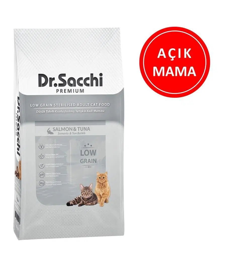Dr.Sacchi Premium Düşük Tahıllı Sterilised Somonlu Kısır Kedi Maması 1 kg AÇIK