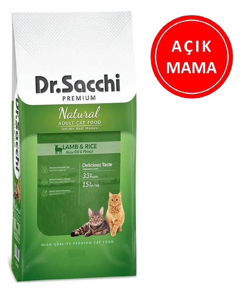 Dr.Sacchi Premium Natural Lamb ve Rice Yetişkin Kedi Maması 1 kg AÇIK