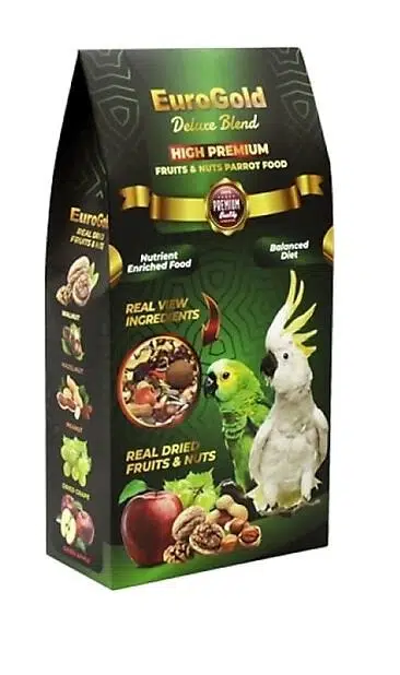 Makav, jako ve kakadular başta olmak üzere, tüm papağan türleri için, seçkin içeriğiyle tam bir beslenme sağlayan, lezzetli ve değerli bileşenlerden oluşan, EuroGold Deluxe Blend Fruits&Nuts Parrot Food Premium papağan yemi vitamin ve minarelleri içeriğinde bulunduran %100 doğal, karışık yemdir.