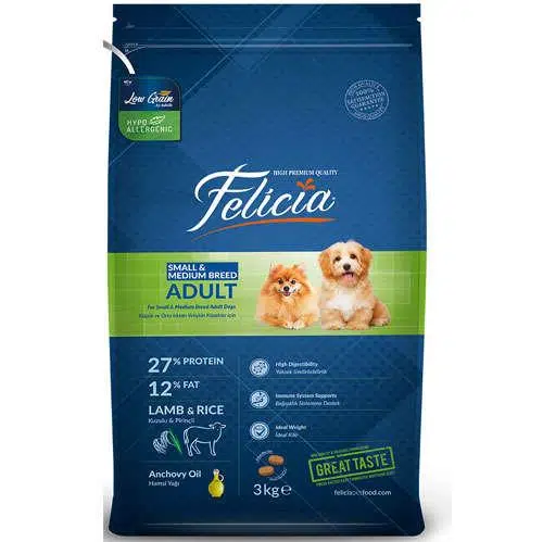 Felicia Adult Small ve Medium Kuzulu Pirinçli Köpek Maması 3 kg