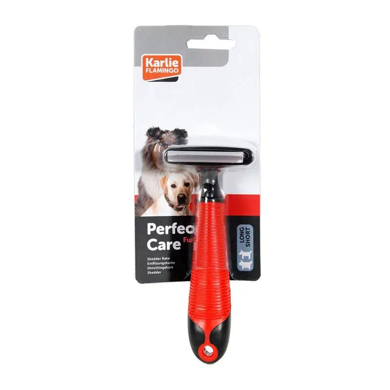 Köpekler için, dökülmek üzere olan ölü tüyleri kesmeden temizleyerek, keyifli bir masaj etkisi ile genel tüy bakımını sağlayan, 15 cm uzunluğunda, çelik uçlu, sık dişli bakım tarağı.