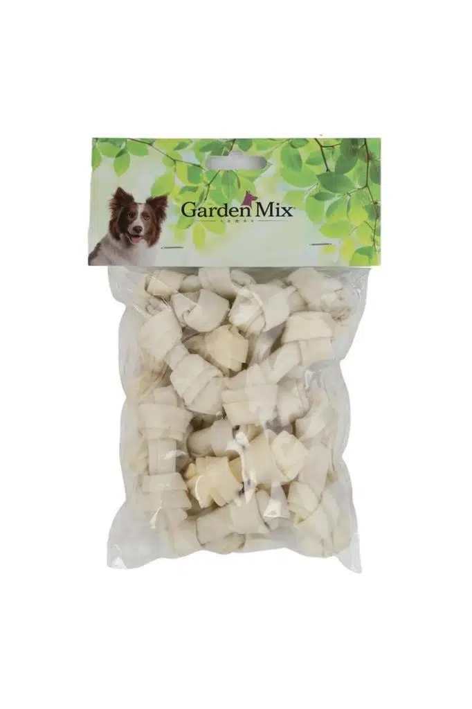 Gardenmix Beyaz Düğümlü Deri Kemik 2,5-3” – 20'li Paket