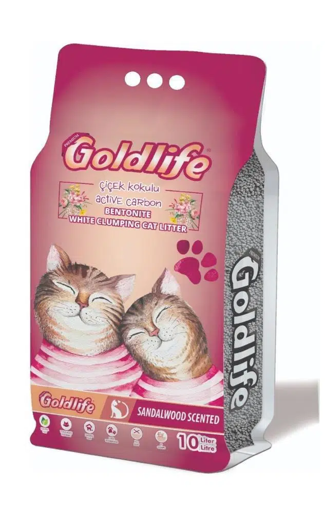 Goldlife Aktif Karbonlu Çiçek Kokulu Topaklanan Bentonit İnce Taneli Kedi Kumu 10 Lt