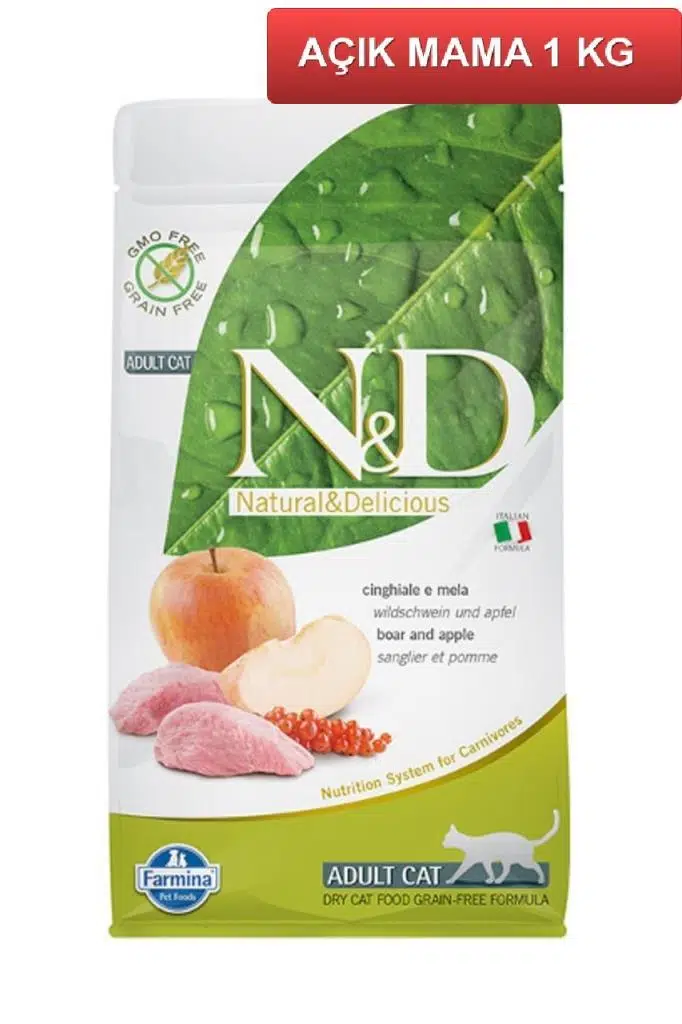 ND Tahılsız Yaban Domuzu Etli Elmalı Kedi Maması 1 Kg AÇIK