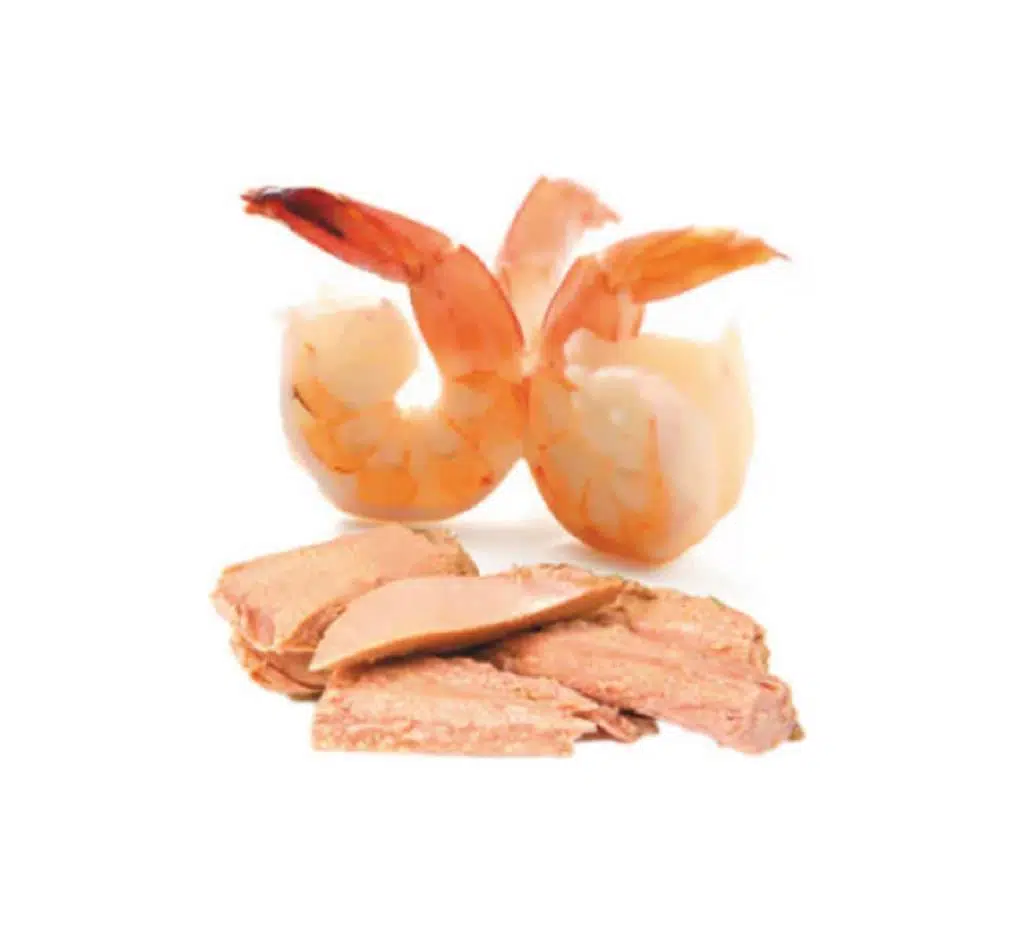 Yetişkin kedilere özel olarak üretilmiş ton balığı, pirinç ve karides katkılı, %100 doğal ürünlerden oluşturulmuş, jöle içerisinde parça etli yaş mama.