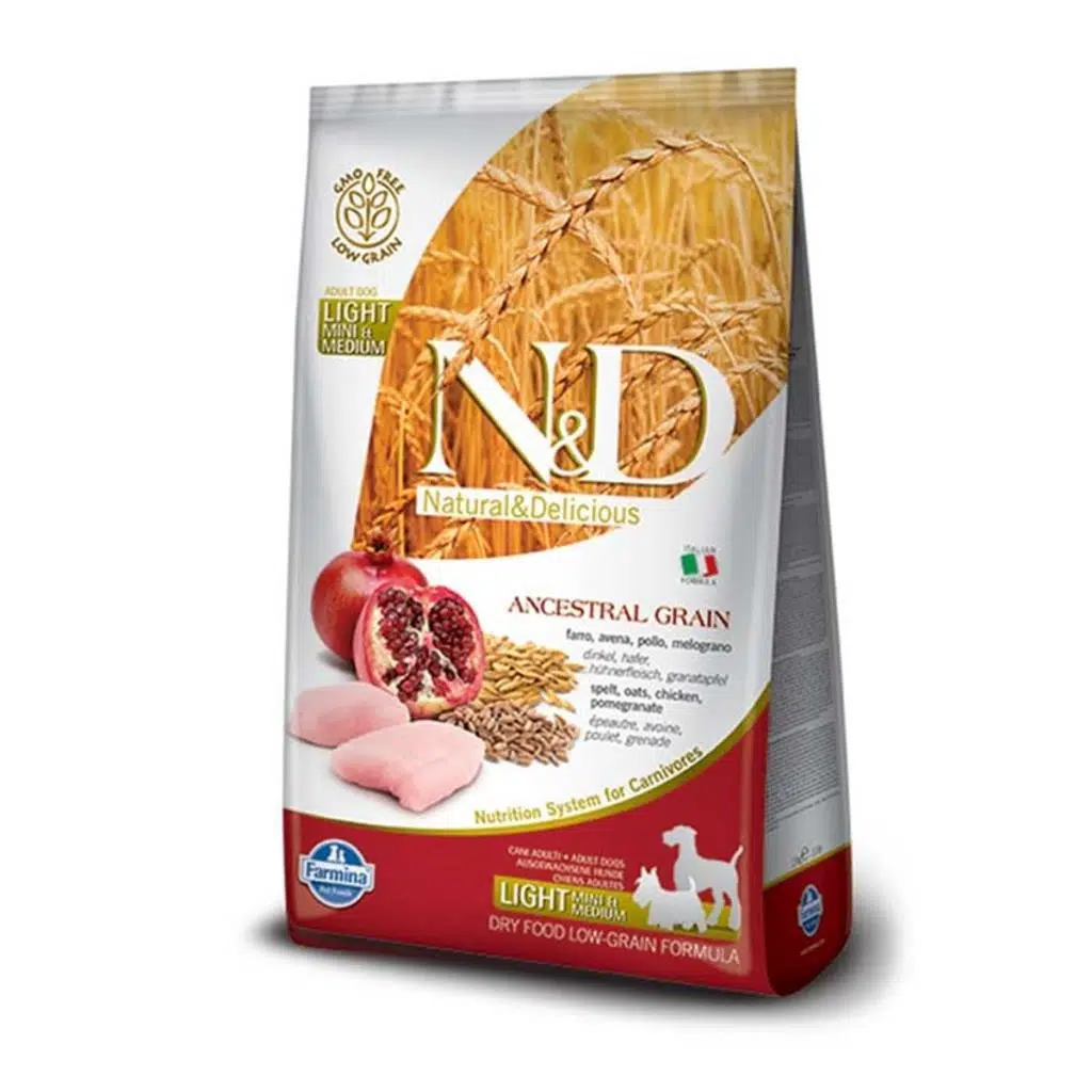 ND light köpek maması, düşük kaloriye ihtiyacı olan aktivitesi az, küçük ırk yetişkin köpekler için, özel olarak formüle edilmiş, dengeli bir beslenme ve mükemmel bir lezzet sunan, tavuklu ve narlı, kuru köpek mamasıdır.