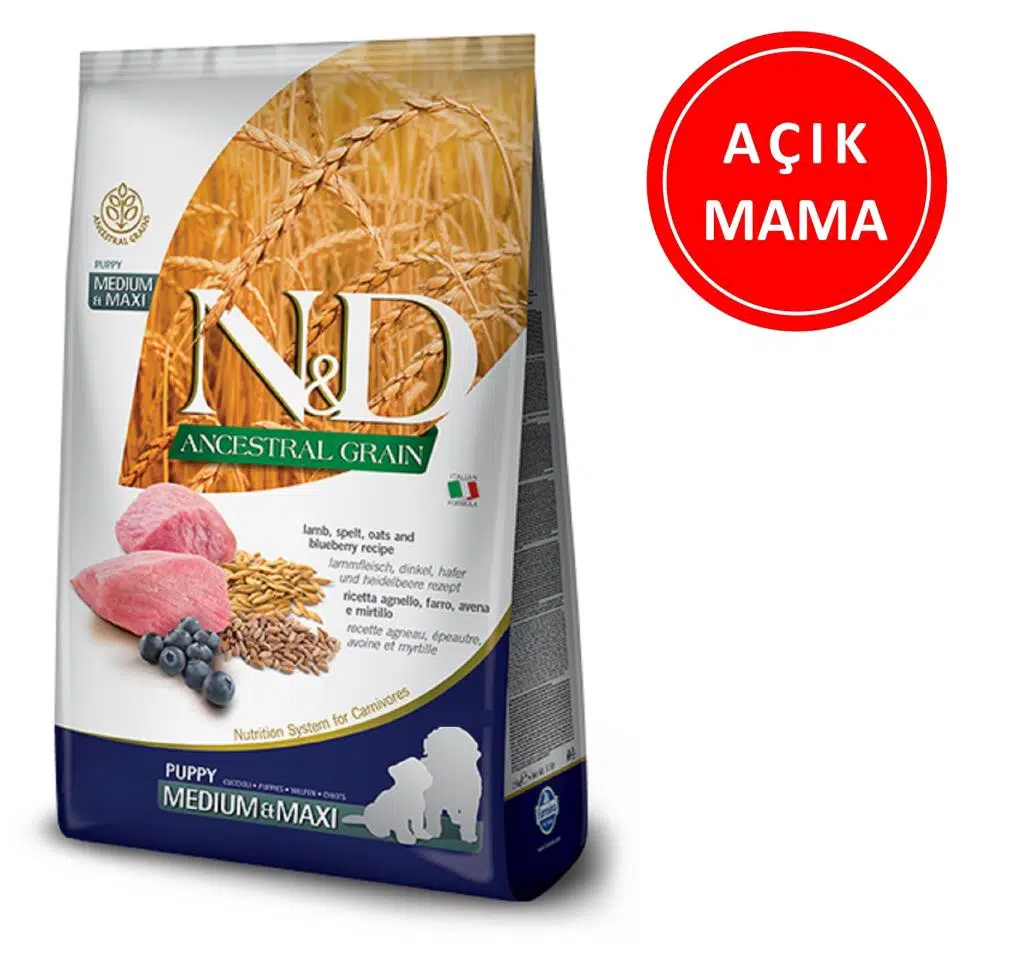 ND Düşük Tahıllı Puppy Kuzulu Medium Maxi Yavru Köpek Maması 1 kg AÇIK