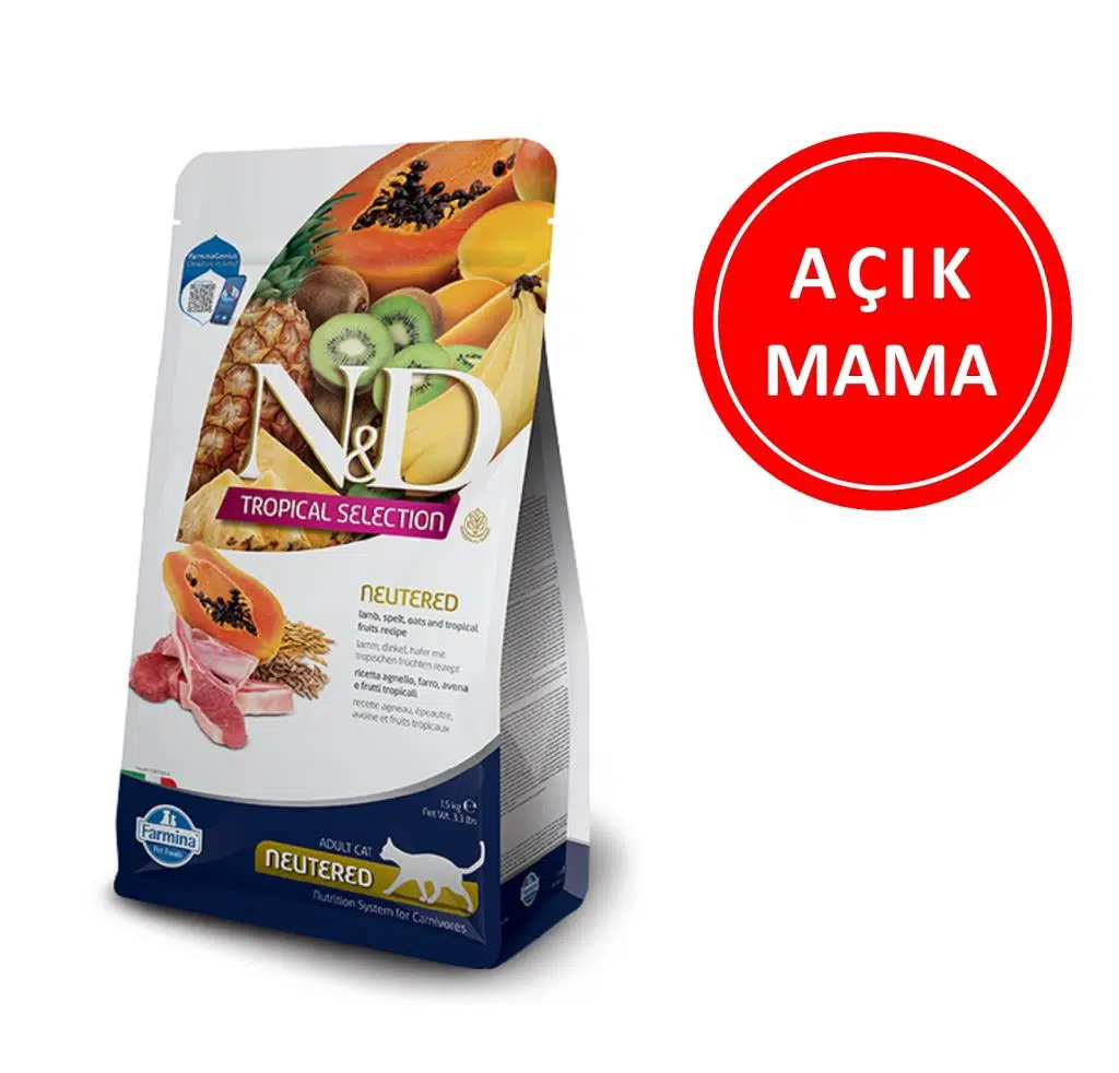 ND Tahılsız Tropical Selection Kuzu Etli Kısırlaştırılmış Kedi Maması 1 KG AÇIK