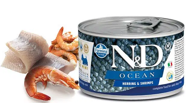 Nd Ocean ringa balıklı karidesli yaş mama, sağlıklı kilo kontrolünü bilimsel olarak kanıtlanmıştır. Nd Konserve Köpek Maması besleyici ringa balığı eti ile formüle edilerek lezzetli karides ile üretilmiştir. İçerisinde tahıl bulunmaz. 55% oranında et içeriğiyle proteini yüksek ölçüde hayvansal içeriklerden alır.