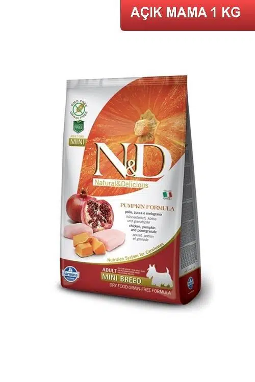 ND Tahılsız Balkabaklı Tavuklu Narlı Yetişkin Mini Irk Köpek Mama 1 Kg AÇIK