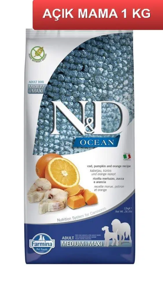 ND Tahılsız Ocean Balkabaklı Morina Balıklı Medium Maxi Köpek Maması 1 kg AÇIK