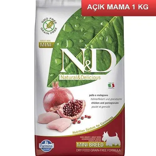 ND Tahılsız Tavuklu Narlı Yetişkin Mini Irk Köpek Mama 1 Kg AÇIK