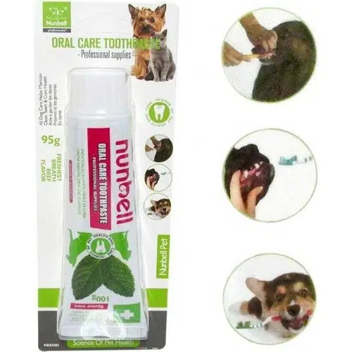 Evcil dostunuzun sağlıklı diş ve diş etlerine sahip olabilmesi için ağız ve diş bakımının düzenli olarak yapılması oldukça önemlidir. Nunbell Diş Macunu evcil dostunuz için özel olarak tasarlanmış olup, sağlıklı diş ve diş etlerine sahip olmasının yanında fırçalama sonrası nefesine ferahlık da katacaktır. Fırçalamaya başlamadan önce parmağınızın ucuna ufak bir parça macun sürerek dostunuzun macunu tatmasına izin vererek ardından fırçalamaya başlayabilirsiniz.