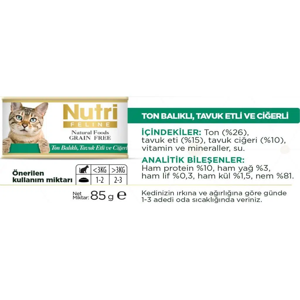 Nutri Feline Tahılsız Tavuklu Ton Balıklı Ciğerli Kedi Konservesi 85 Gr