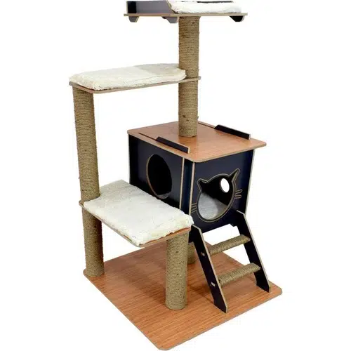 Kedinizin günün büyük bir kısmını üzerinde geçireceği ürünümüz, kedilerinizin konforu ön planda tutularak evinize şık bir hava katacak şekilde özenle tasarlanmaktadır. Tırmalama alanları, yatak ve yuva ile bütünleştirilen bu kompleks tasarımın en önemli faydalarından biri de kedinizin tırmalama sopalarına çabucak alışmasını sağlamaktır.