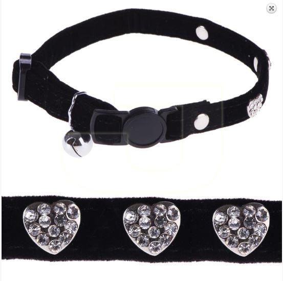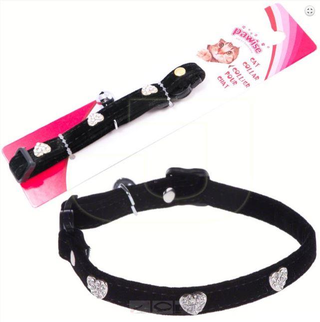 Pawise Kalp Taşlı Siyah Kedi Boyun Tasması