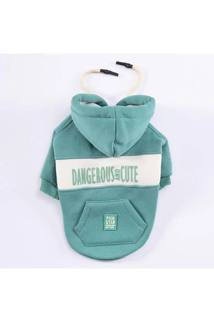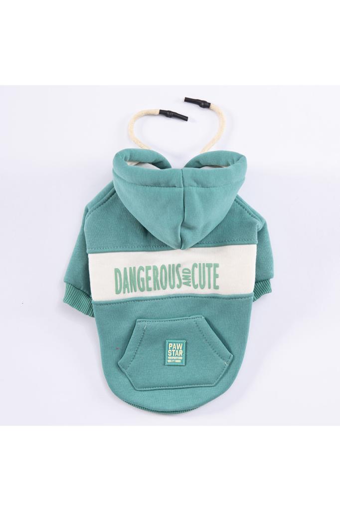 Pawstar Kedi ve KÜÇÜK Köpek Green Cute Hoodie L Sırt33cm Göğüs46cm Boyun30cm