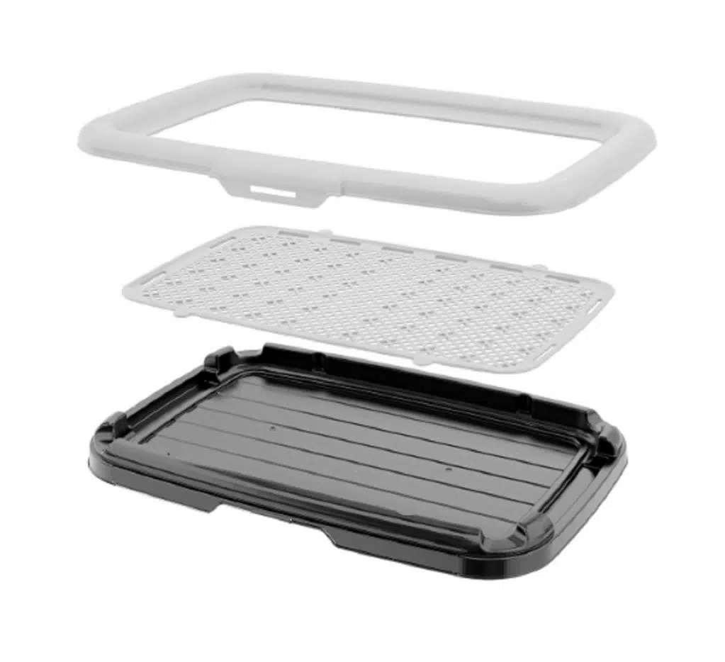 Üzerinde bulunan ızgara yüzeyi sayesinde köpeğiniz tuvaletini patilerine bulaştırmadan iç haznesine geçirmesini sağlar.