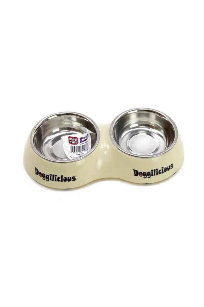 Playfull Diva Doublediner Beyaz Çıkabilen Çelik Kedi Köpek Mama Kabı Small 11cm*2