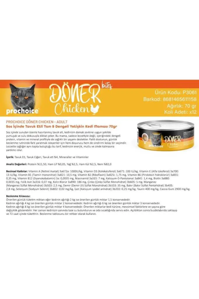 ProChoice Döner Bites Sos İçinde Tavuk Etli Yetişkin Kedi Konservesi 70 Gr