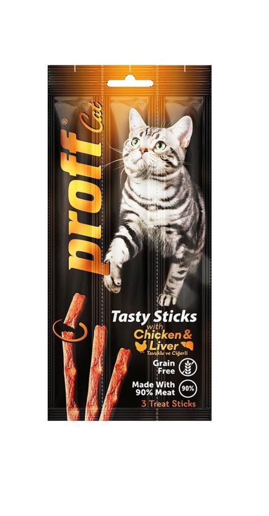 Proff Cat Tavuk Ciğerli Etli Kedi Ödül Çubukları, Proff kedi ödülü, yumuşak stick şeklindedir. Kediler için besleyici ve lezzetli bir ek gıdadır. Proff kedi ödülü tahılsız içeriğe sahiptir. % 90 oranında et içermektedir. Kediler için kuru mamanın yanında hem besleyici bir ek gıda, hem de ödül olarak kullanılabilir. Yumuşak formu sayesinde küçük parçalara bölünerek kullanılabilir. Paket içerisinde her biri 5 gr ağırlığında 3 adet kedi ödülü bulunmaktadır.