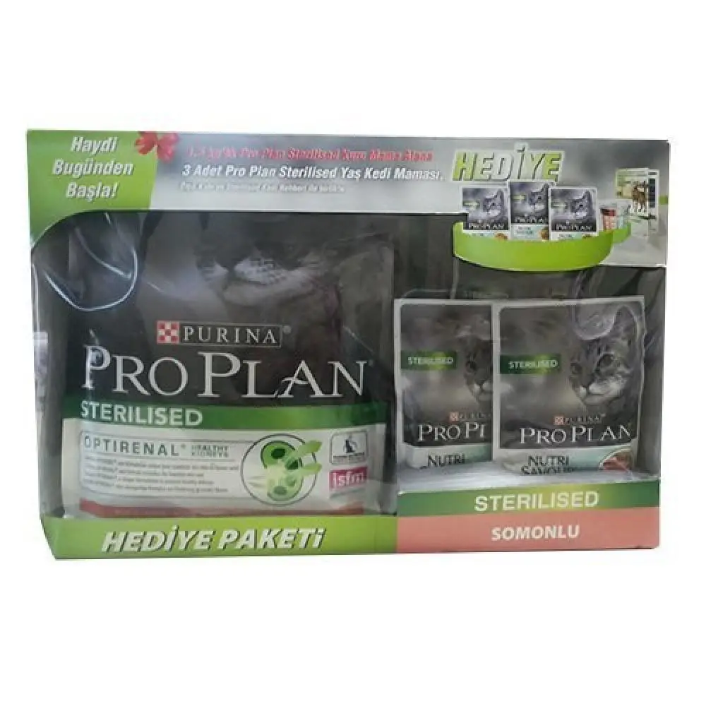ProPlan Sterilised Somonlu Kısırlaştırılmış Kedi Maması 1,5 Kg+3 Adet Yaş Mama Hediyeli