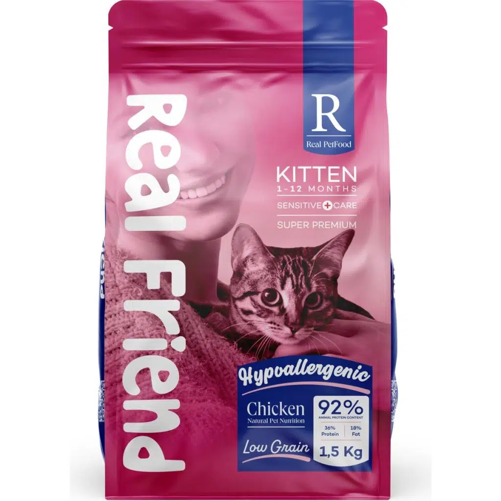 | Etiketler | Real Friend Digest Care Hypoallergenic Kitten Chicken 36/18 Kedi Maması 1,5 Kg |