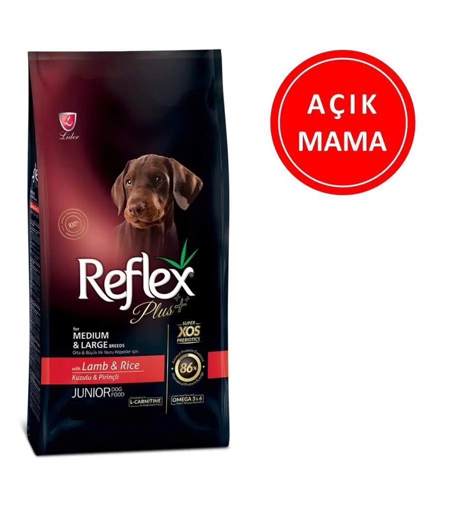 Reflex Plus Orta Büyük Irklar İçin Kuzulu Pirinçli Yavru Köpek Maması 1 Kg AÇIK