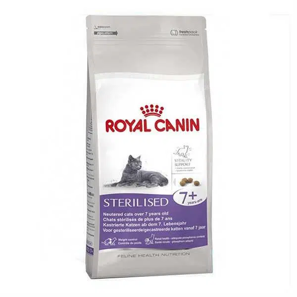 Royal Canin Sterilised +7 kısırlaştırılmış kediler için özel olarak belirlenen miktarda karbonhidrat ve kalori içerir.