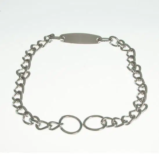 2,5 mm kalınlıkta paslanmaz çelikten üretilmiş, 50 cm uzunluğundaki zincir tasmadır.