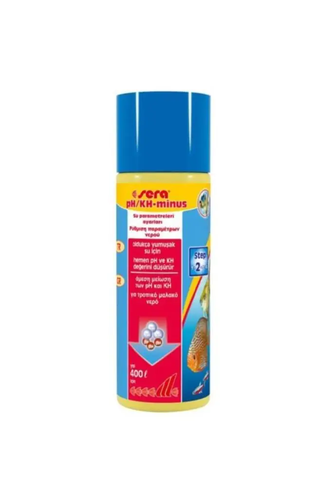 SERA pH MINUS (100ml) Sera pH-minus, tatlı su akvaryumlarındaki pH değerini güvenli bir şekilde azaltır. pH değerinin 7.0 ve KH değerinin 6ºdKH üzerinde olması durumunda akvaryum suyunun her 20 litresi için 5 ml sera pH-minus ekleyin. pH değerinin 7.0 veya daha altı olması durumunda akvaryum suyunun her 20 litresi için 1-2 ml Sera pH-minus ekleyin.