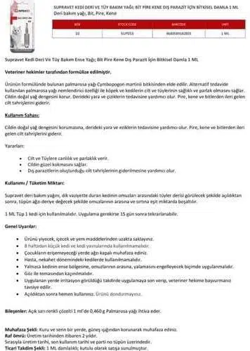 | Etiketler | Supravet Kedi Deri ve Tüy Bakım Yağı 1 ml |